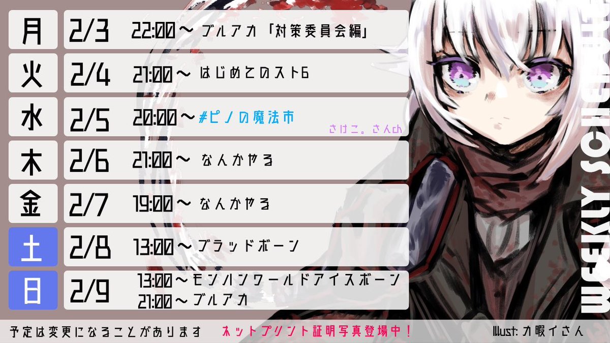 今週のスケジュール