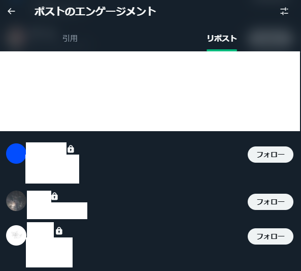 鍵垢のリポスト(リツイート)が貫通して見られるようになってます。ご注意ください