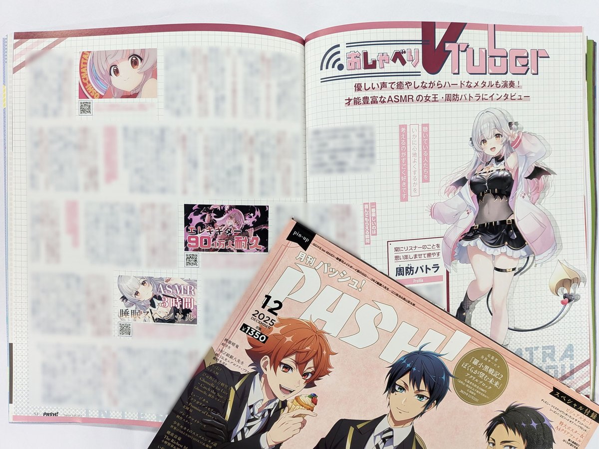 https://pbs.twimg.com/media/G5IC1LobAAAuMfU.jpg【本日発売PASH!12月号】『おしゃべりVTuber 周防パトラ』! 才能豊富なASMRの女王・周防パトラさんに活動の裏にある創作への情熱とファンへのまっすぐな想いを語っていただきました!