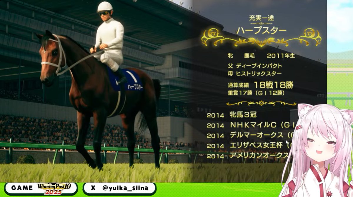 750 名無しさん 2026/01/07(水) 01:40:48.30 ID:IIF5Qm2v- 椎名さんのハープスター18戦18勝G1-12勝でフィニッシュ