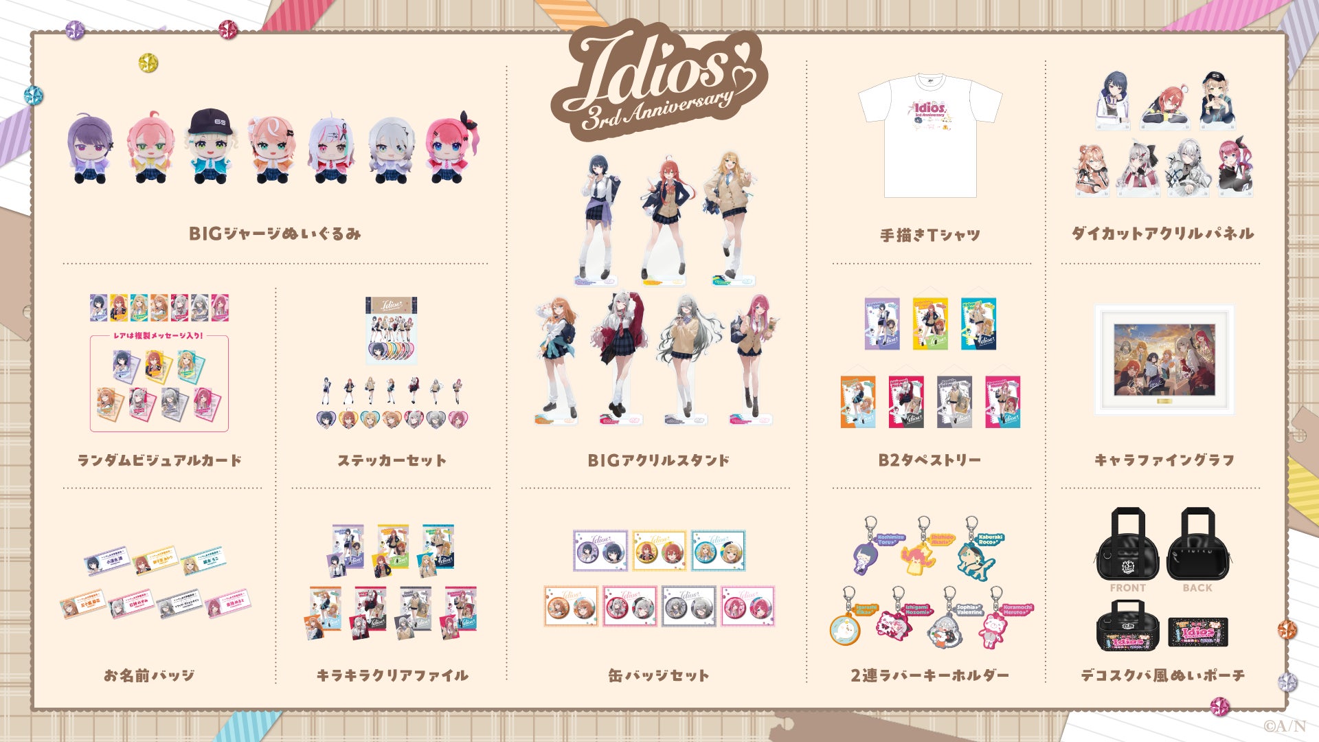 https://pbs.twimg.com/media/G-rC8v3bQAAKQQ-.jpg【#Idios 3rd Anniversary グッズ販売決定!】